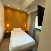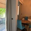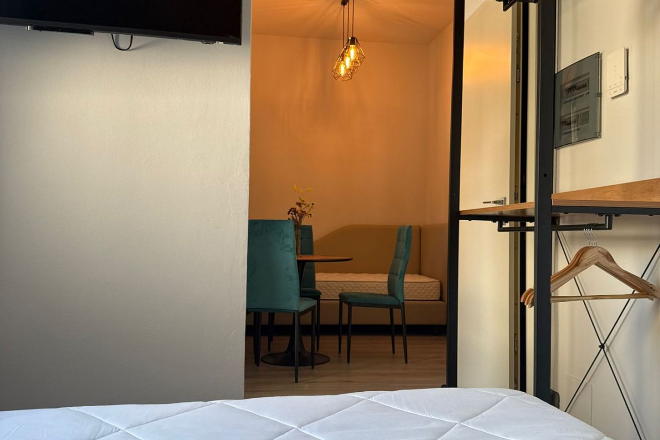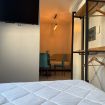 Lo spazio è unico e ben organizzato: nella stessa stanza si trovano un letto alla francese, un divano letto singolo, un tavolo da pranzo con quattro sedie, TV, mini bar e un armadio a giorno funzionale per riporre abiti e valigie.